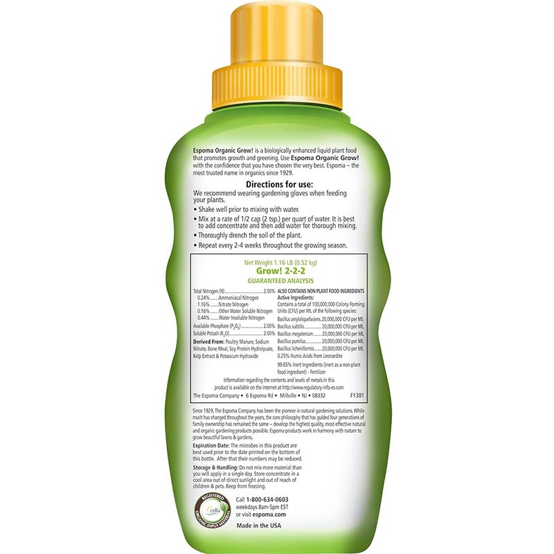 FOR ORGANIC GARDENING: Grow! is approved for organic gardening; It is a registered Organic Input Material meaning it meets all requirements for organic production.