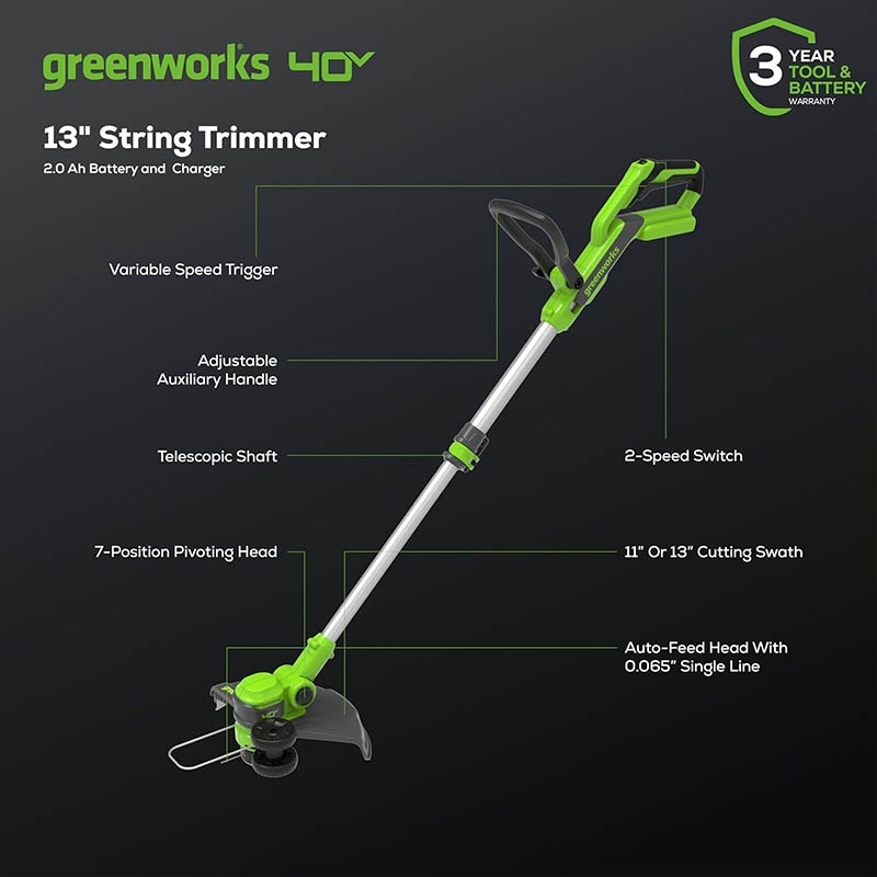 40V Lithium-Ion - One battery powers over 75+ Greenworks 40V tools.No load speed : 9000±10% RPM