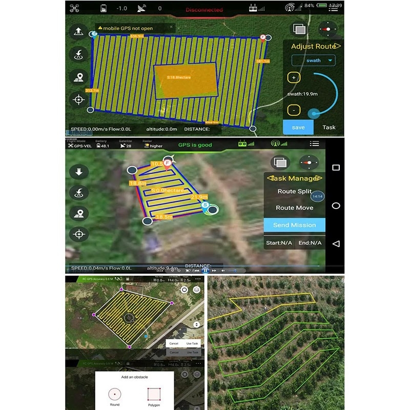 | Features: | A-B point spray, Area spraying plan, Break point continual spraying. Empty tank reminder and terrain follow spraying, camera, FPV, image transmit. |